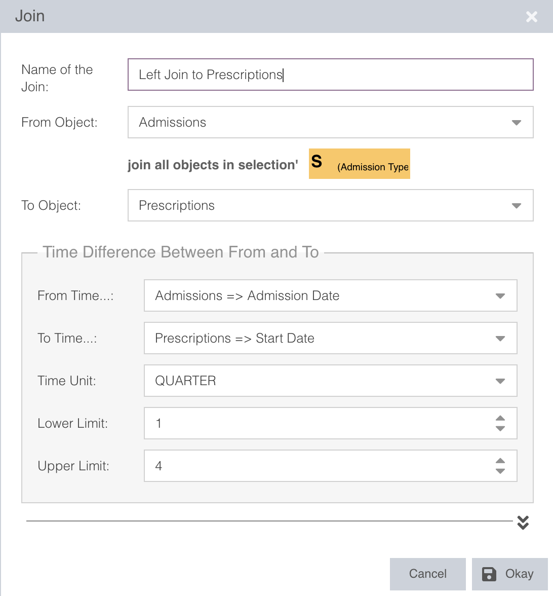join all Prescriptions of a certain kind, which have been prescribed after the diagnosis was made, to the “Diagnoses” object.